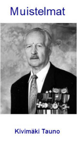 Olen Tauno Johannes Kivimäki. Olen syntynyt 14.5.1917 Salossa. Olin mukana Salossa palokunnan toiminnassa, joka oli alkujaan kovin kiinni urheilussa ja kaikessa semmoisessa. Palokunnalla oli vuosittain huomattavat juhlat Kärkässä. Kaupunki tyhjeni, kun kaikki menivät juhlille. Päällikkönä oli hyvä mies, Syvänen.
